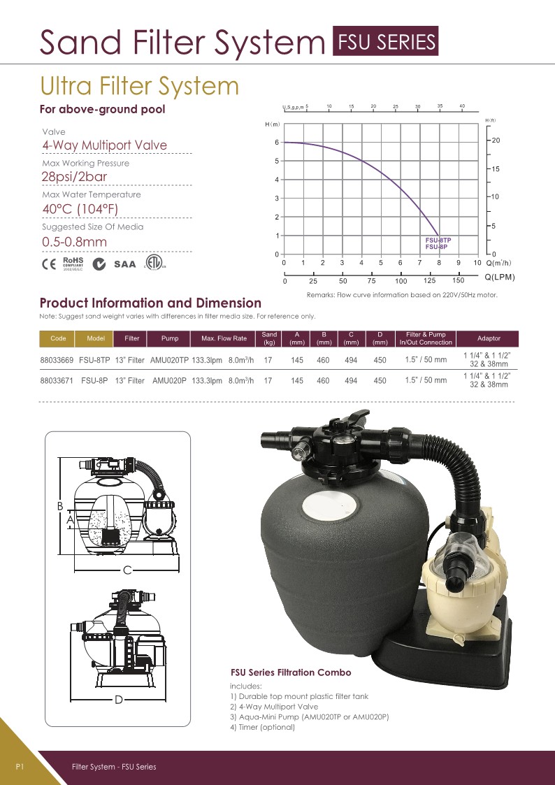 Ultra Swimming Pool Pump Filter Combo